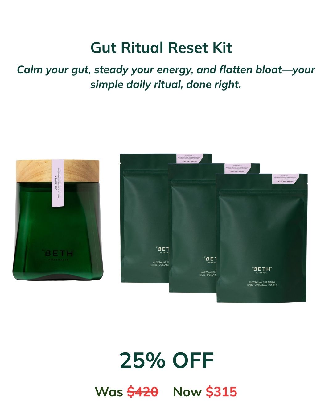 Your essential gut reset kit: the original full-size Gut Ritual+ paired with three refills for lasting results.