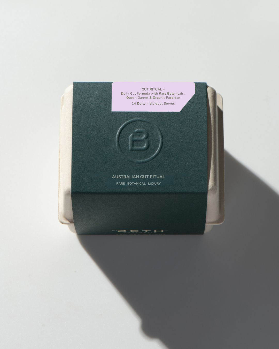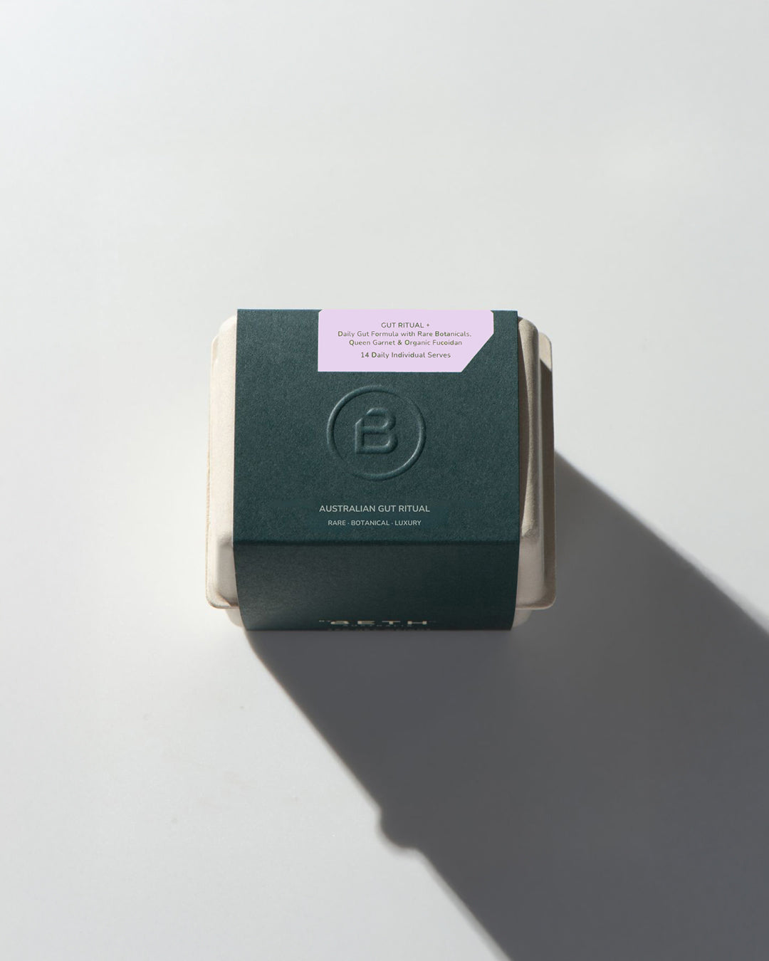 Each single-serve Gut Ritual+ sachet delivers the same rare, evidence-backed blend of Queen Garnet, organic Maritech® fucoidan, native botanicals, and probiotics — now in a perfectly portioned, portable format.