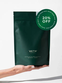 Experience a harmonious blend of 100% Australian bovine collagen and potent native botanicals—Wattleseed, Davidson’s Plum, and Cinnamon Myrtle. This formula is rich in natural Vitamin C, a vital nutrient that not only brightens skin and supports collagen production but also helps protect against premature ageing.